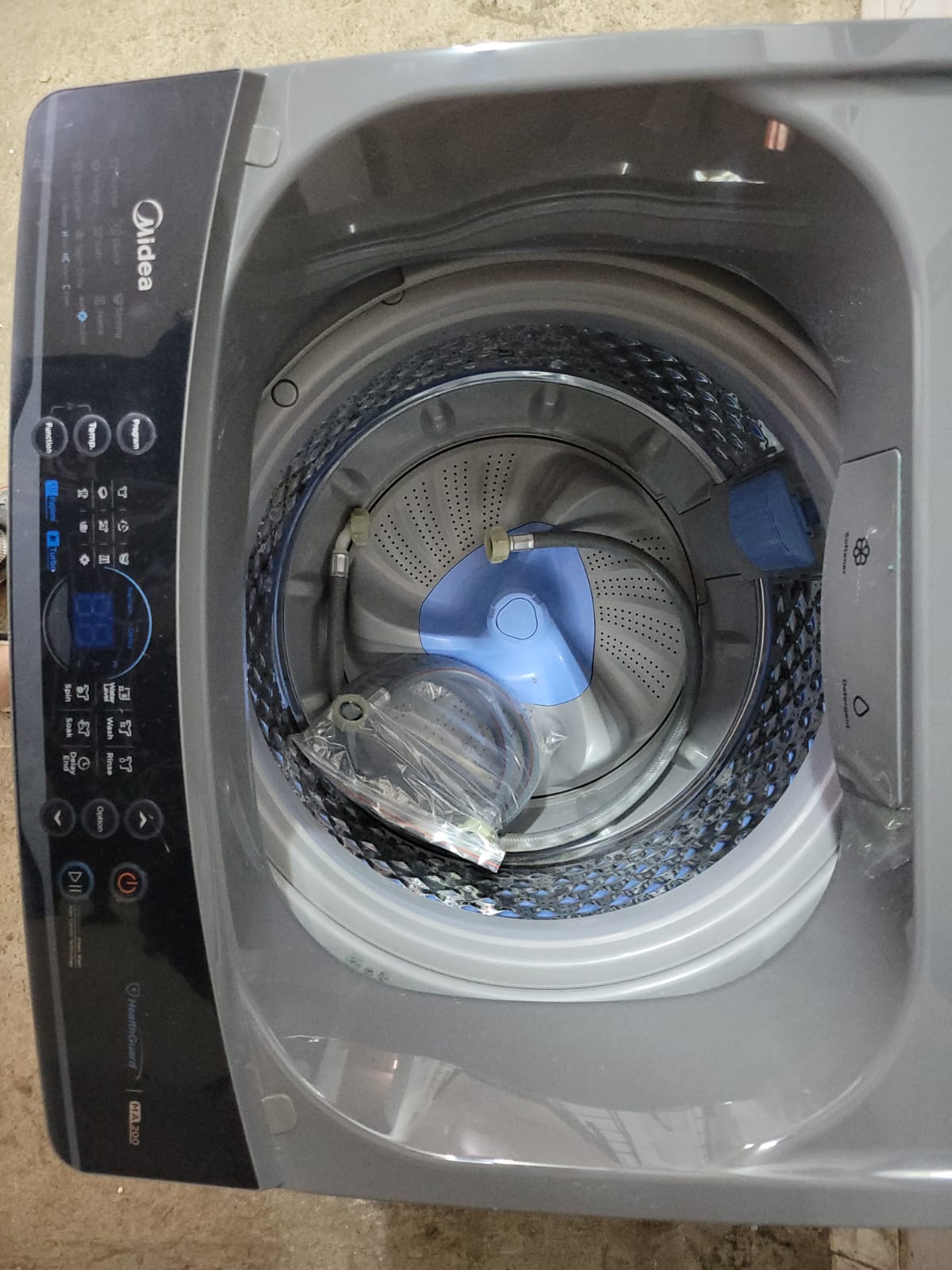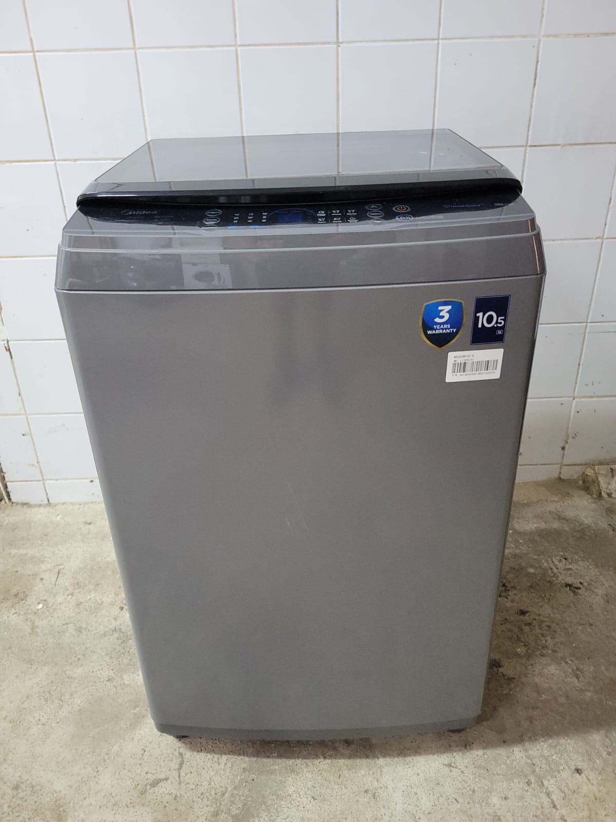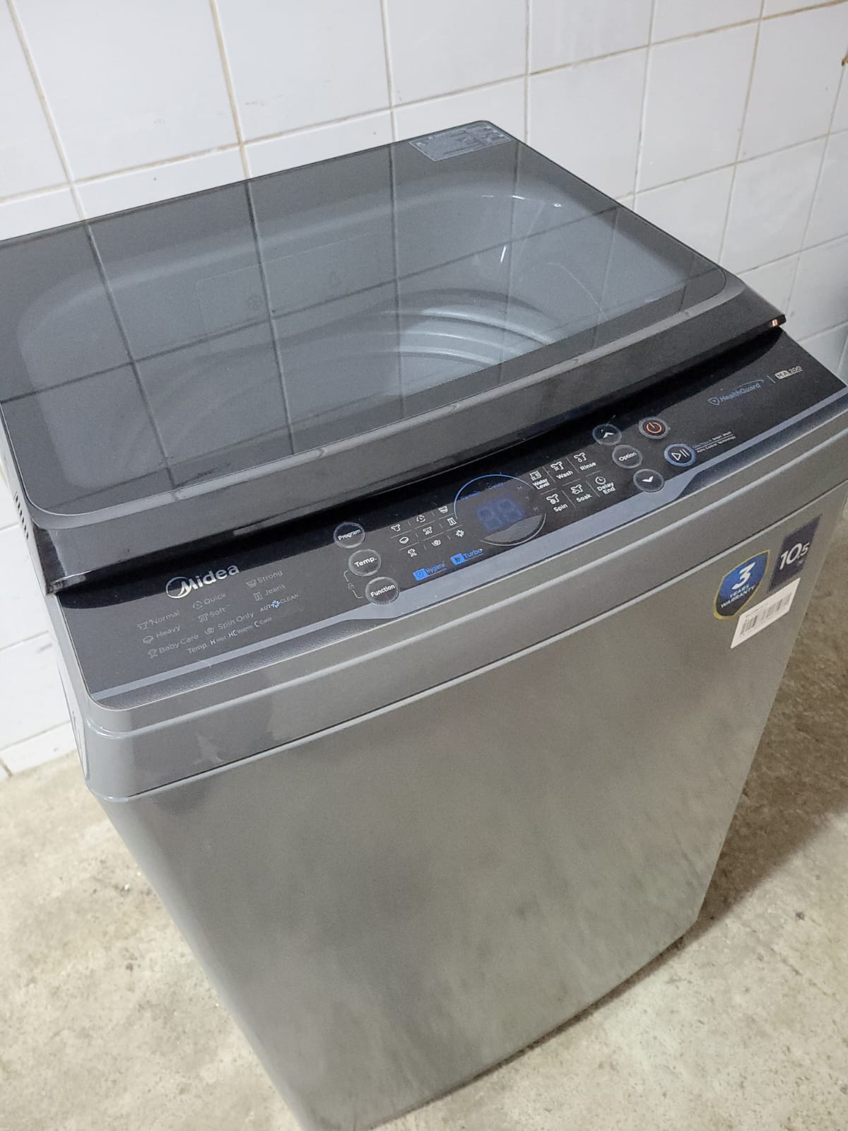 MIDEA 10KG WASHING MACHINE. SILVER. TOP LOADER. ALL PIPES AND BOOKLET. EXCELLENT CONDITION. WORKING.
