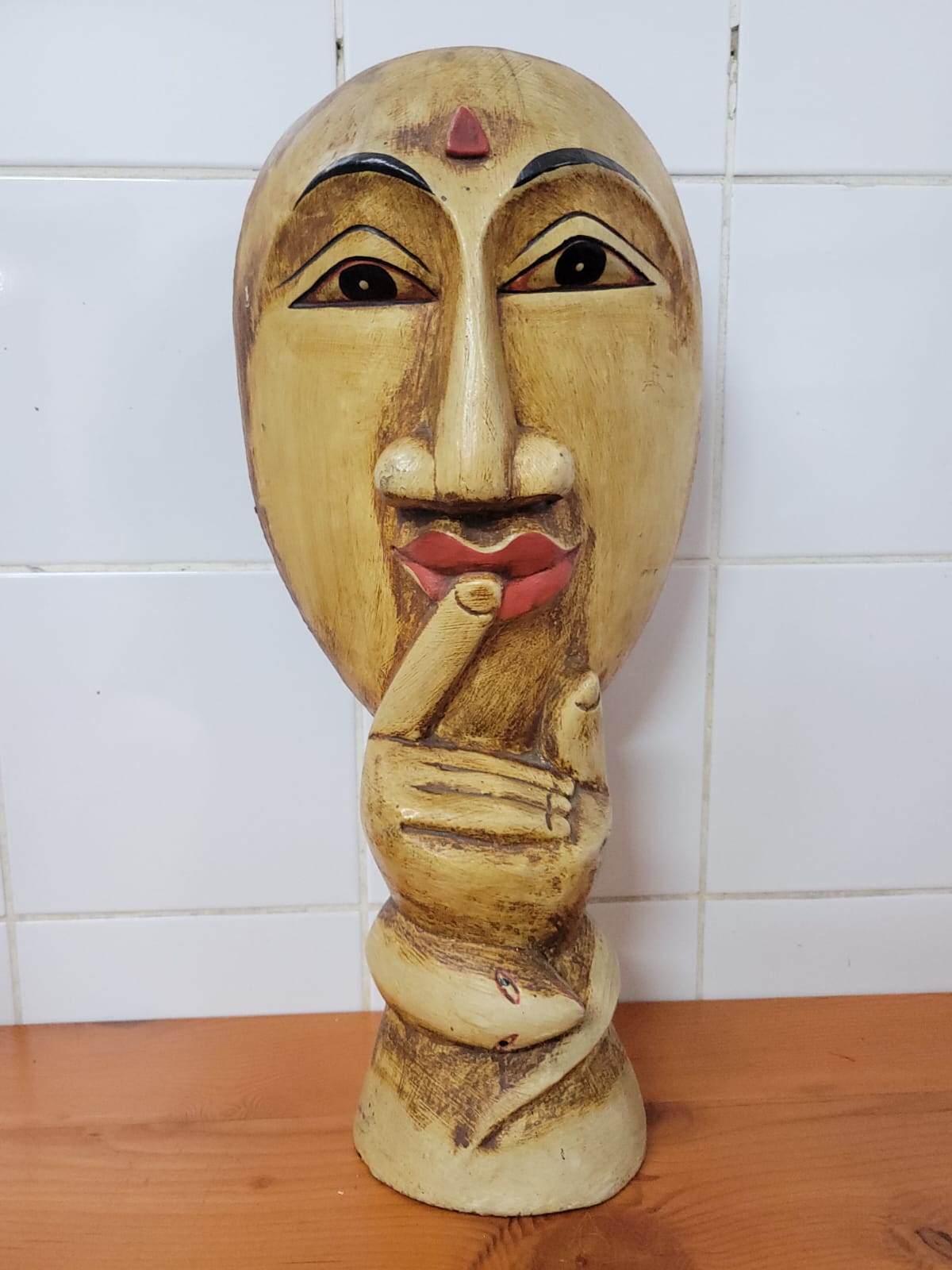 HAND CARVED “SHUSH” OR “THINKING” BUDDHA. SOLID WOOD. 40CM APPROXIMATELY.