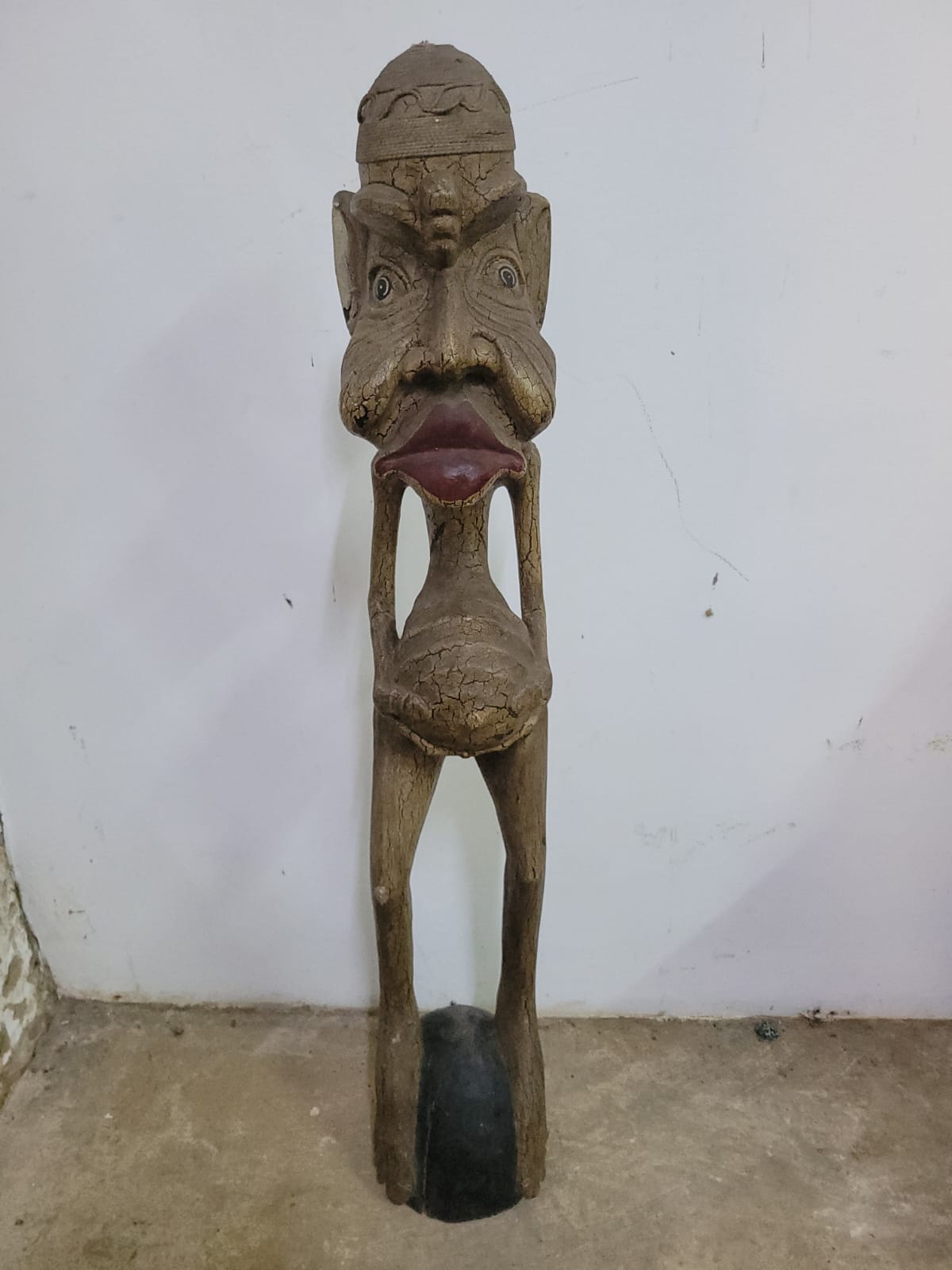 TRIBAL ART FROM CENTRAL OR WEST AFRICA. FEATURES HIGHLY STYLIZED HUMAN CHARACTERISTICS. 1,2M APPROXIMATELY.