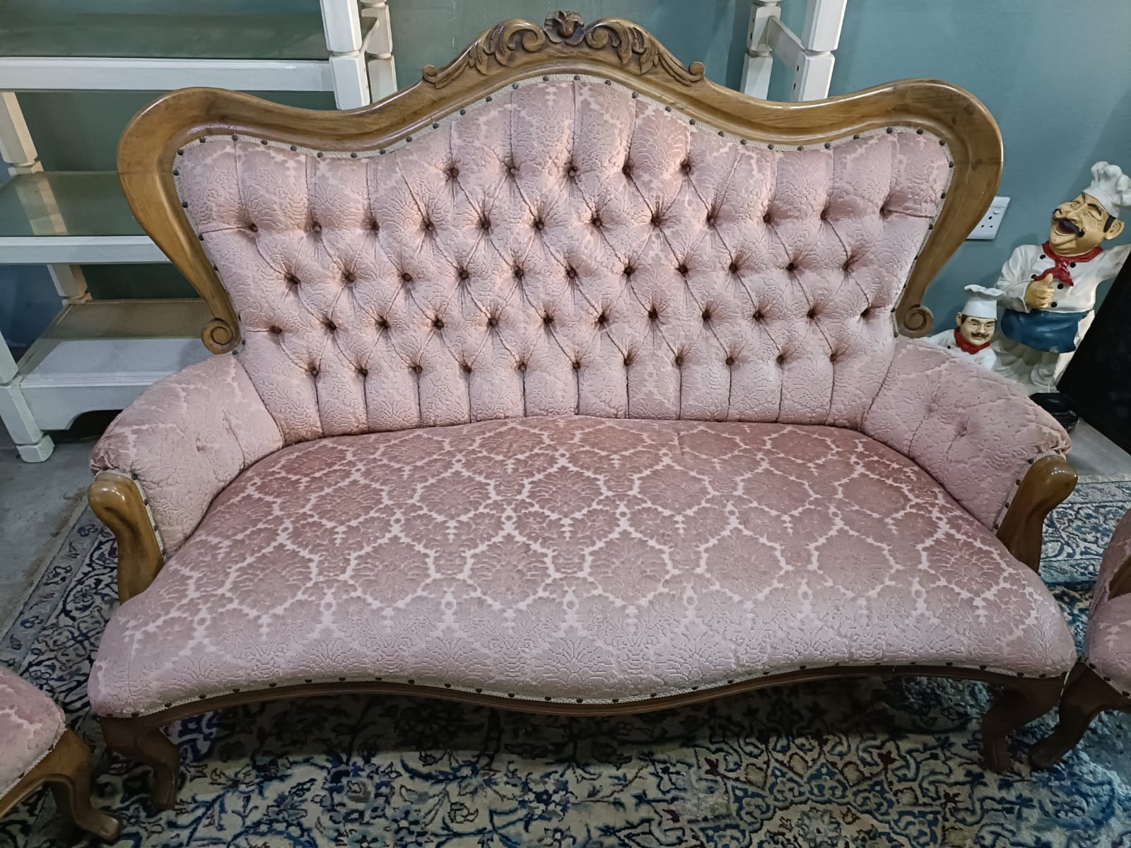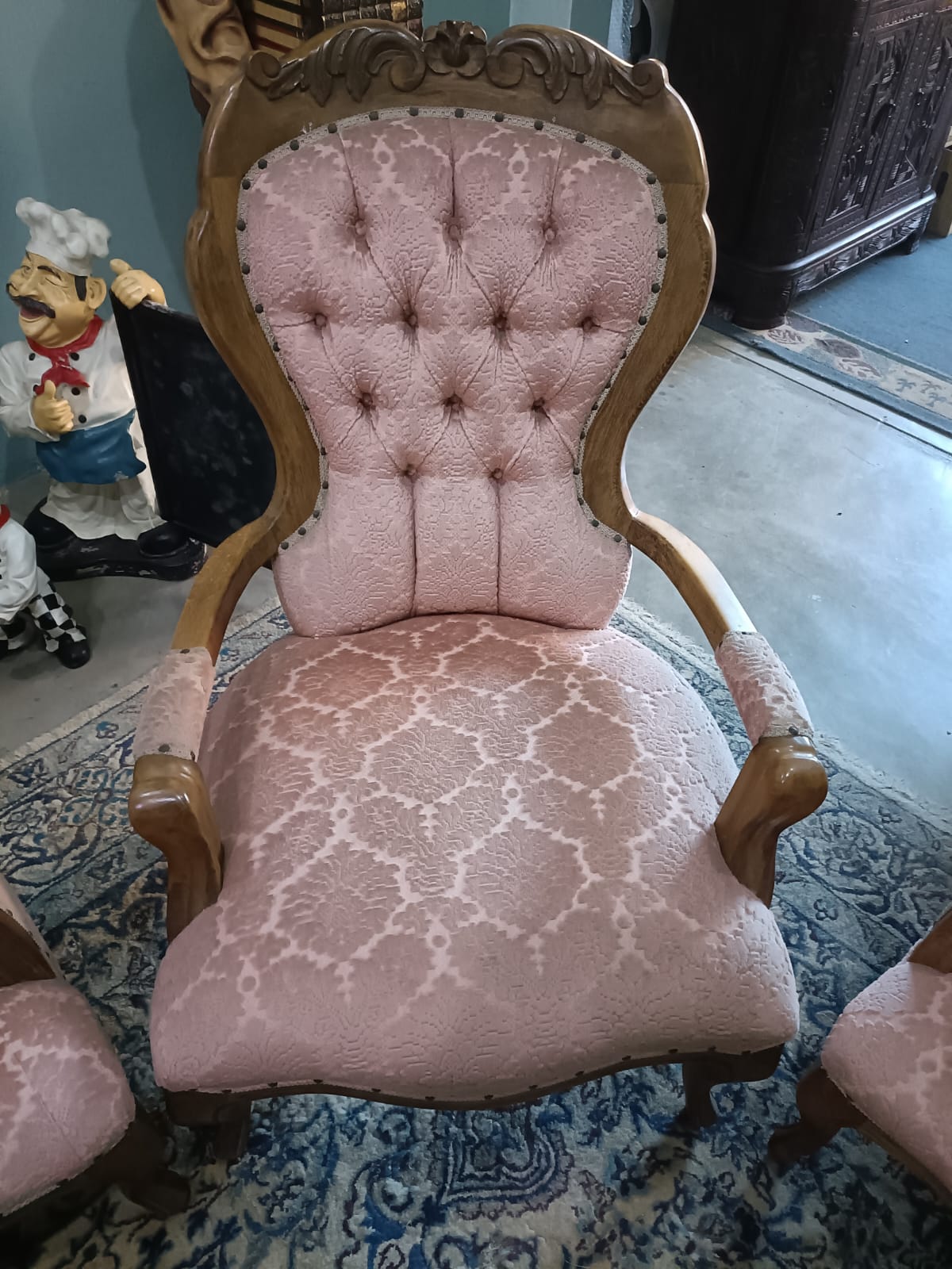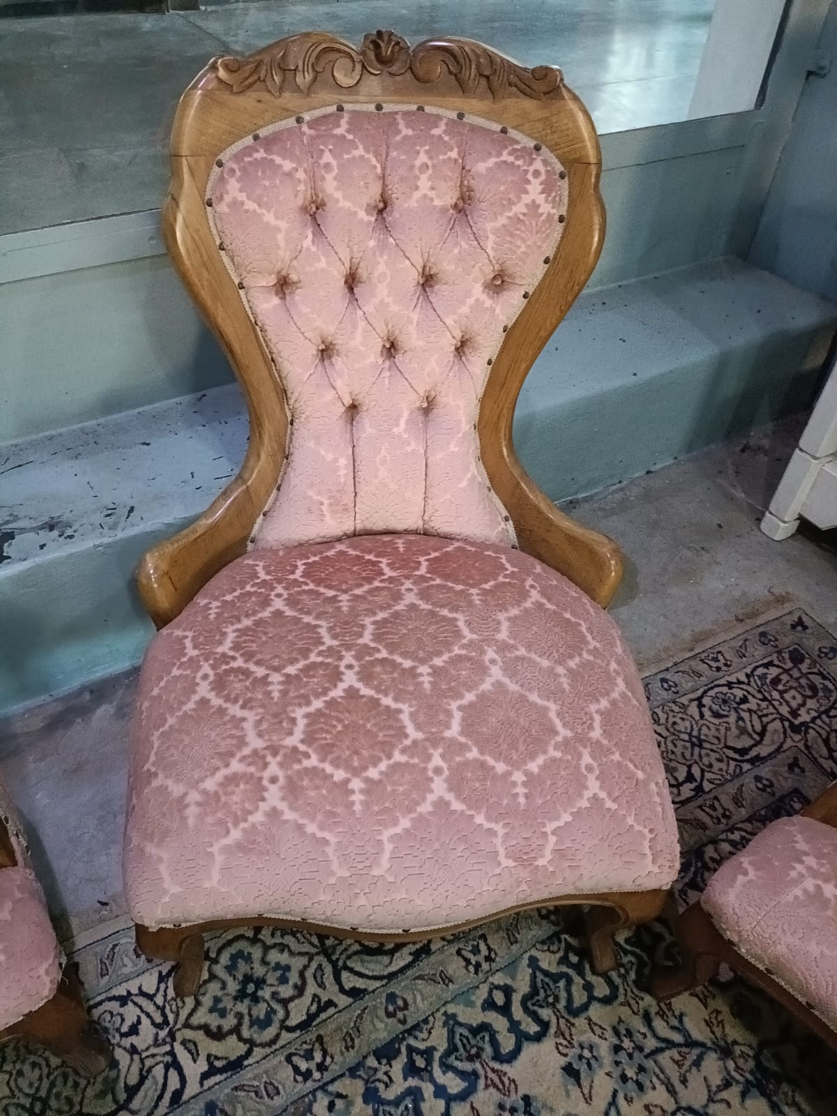 VINTAGE VICTORIAN CARVED SOFA AND 4 CHAIRS. VERY GOOD CONDITION.