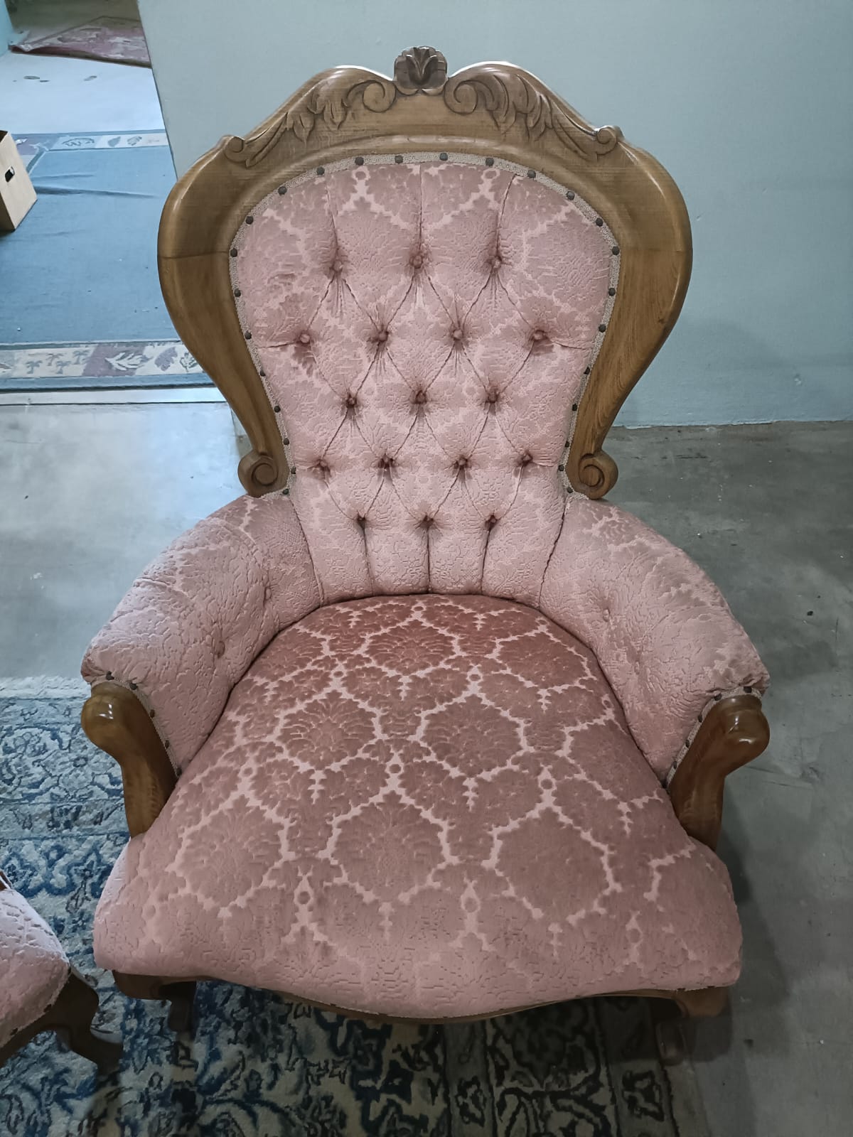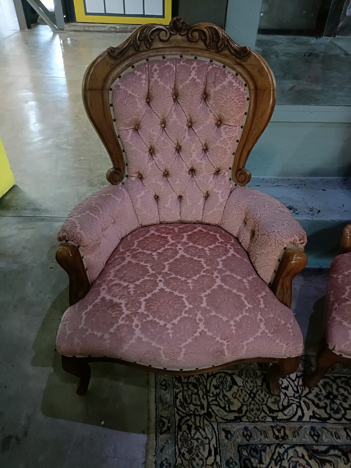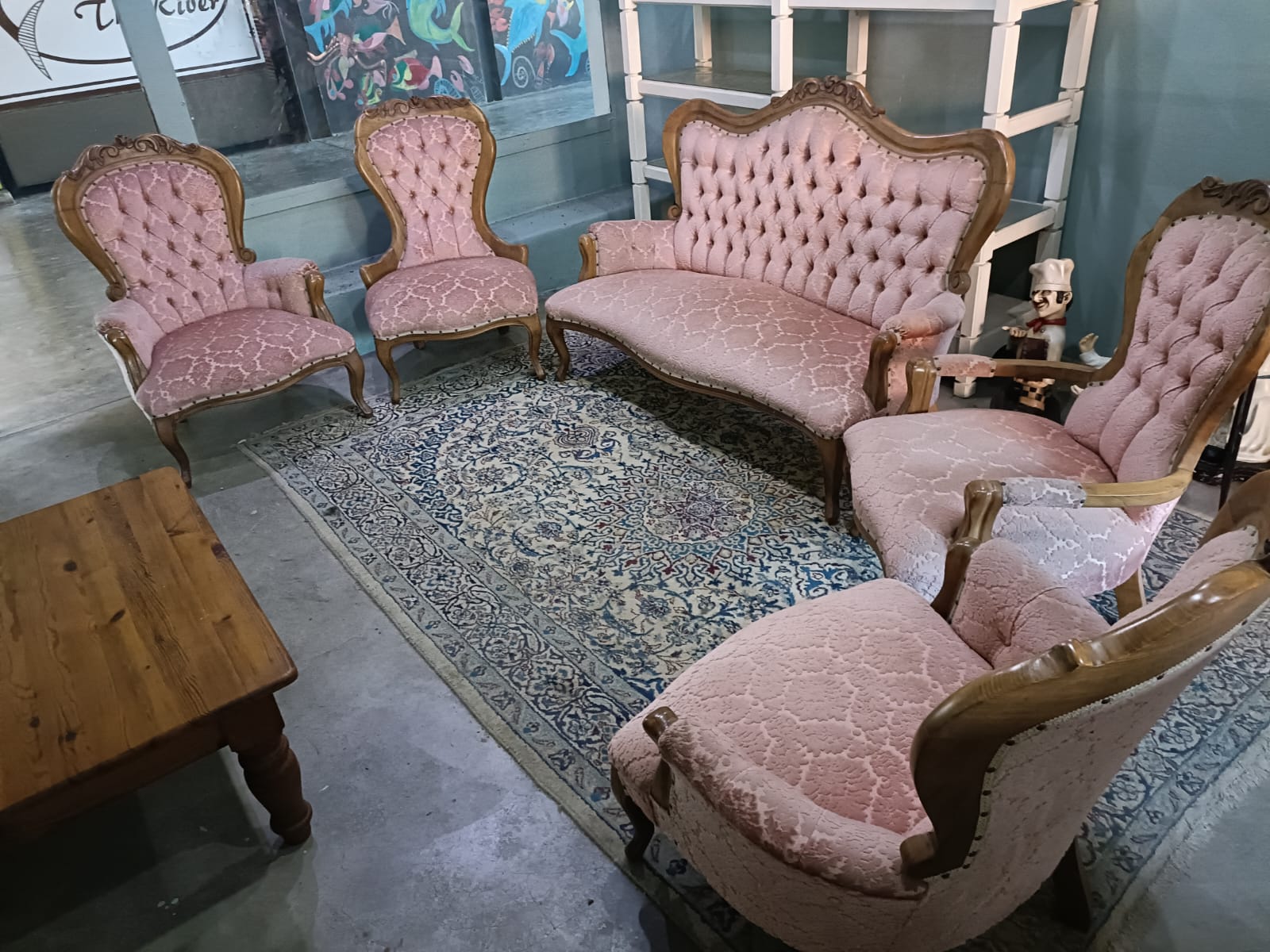 VINTAGE VICTORIAN CARVED SOFA AND 4 CHAIRS. VERY GOOD CONDITION.