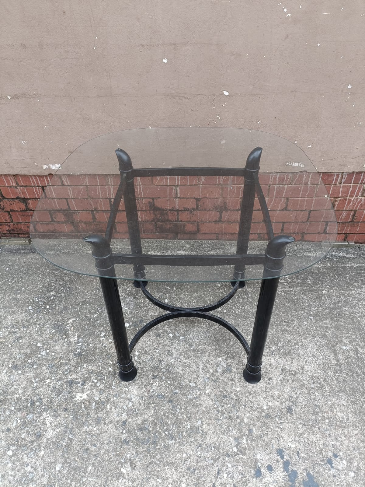 4 SEATER KITCHEN TABLE. GLASS TOP ON DURABLE SCULPTED PVC FRAME.