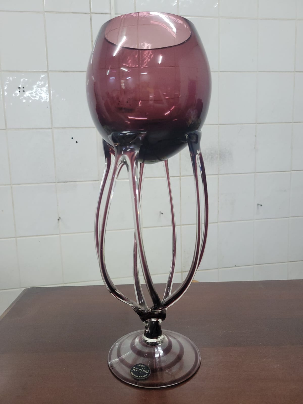 LARGE VINTAGE GLASS ART FROM POLAND. JELLYFISH / OCTOPUS DESIGN. AMETHYST COLOR. NO CHIPS OR CRACKS. 40CM APPROXIMATELY.